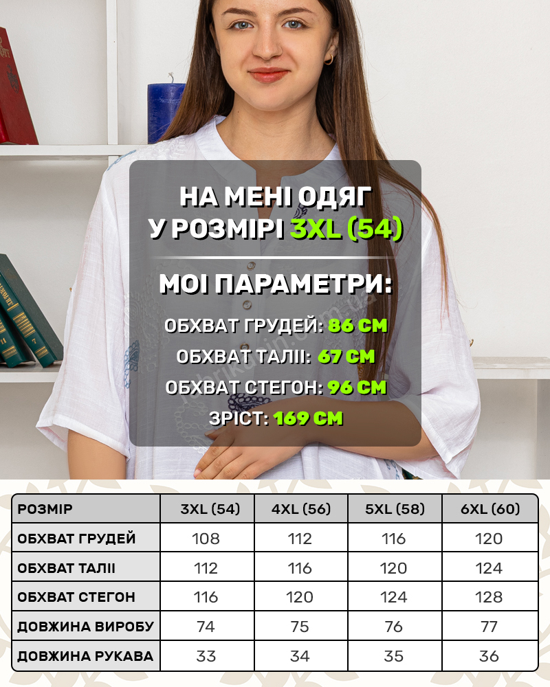 Блузка на гудзиках вишивка р-р: 54-60 колір: білий