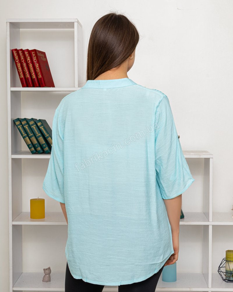 Блузка на гудзиках вишивка р-р: 54-60 колір: бірюзовий