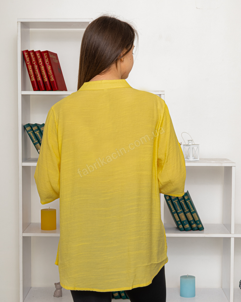 Блузка на гудзиках вишивка 48 - 56 колір: жовтий