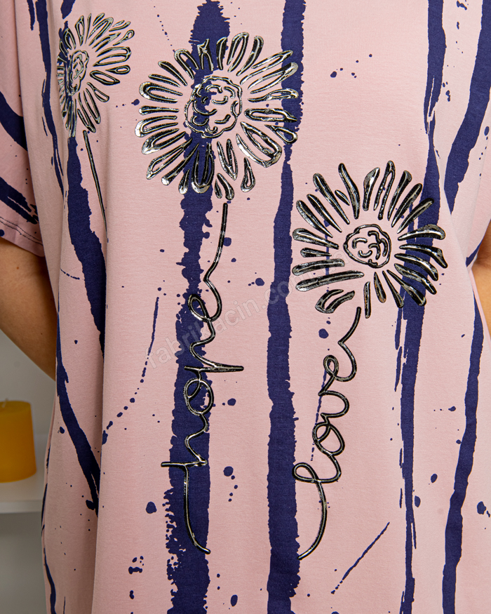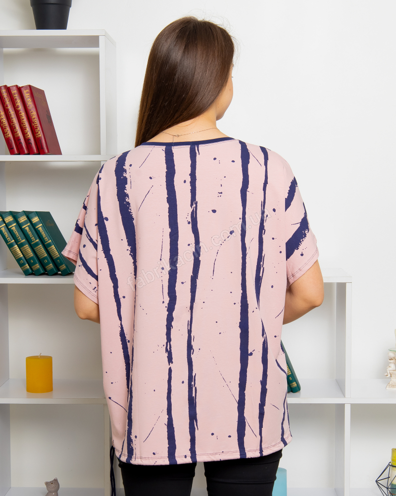 Футболка батал Квітка художня фантазія OneSize до 66; колір: пудровий