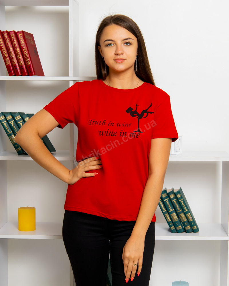 Однотонна футболка спереду малюнок з написом, склад тканини: 90% cotton 10% lycra, представлена в одному розмірах S42 та М(44)