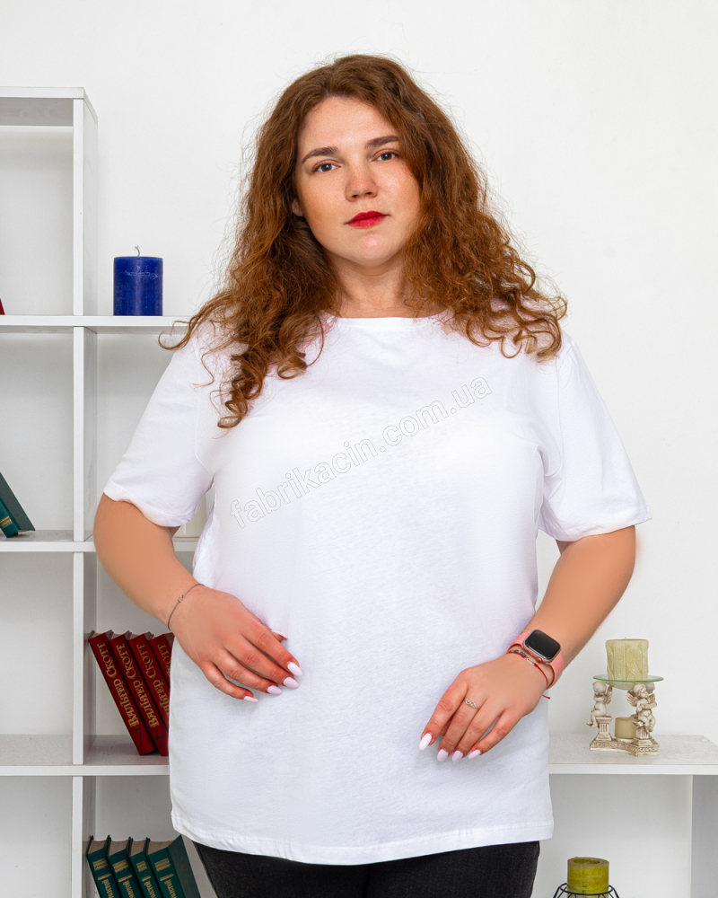 Базова біла футболка батал. Модель виконана з м'якої та дихаючої бавовни, забезпечує комфорт на весь день. Вільний прямий крій, не сковує рухи. Доступна у великих розмірах.