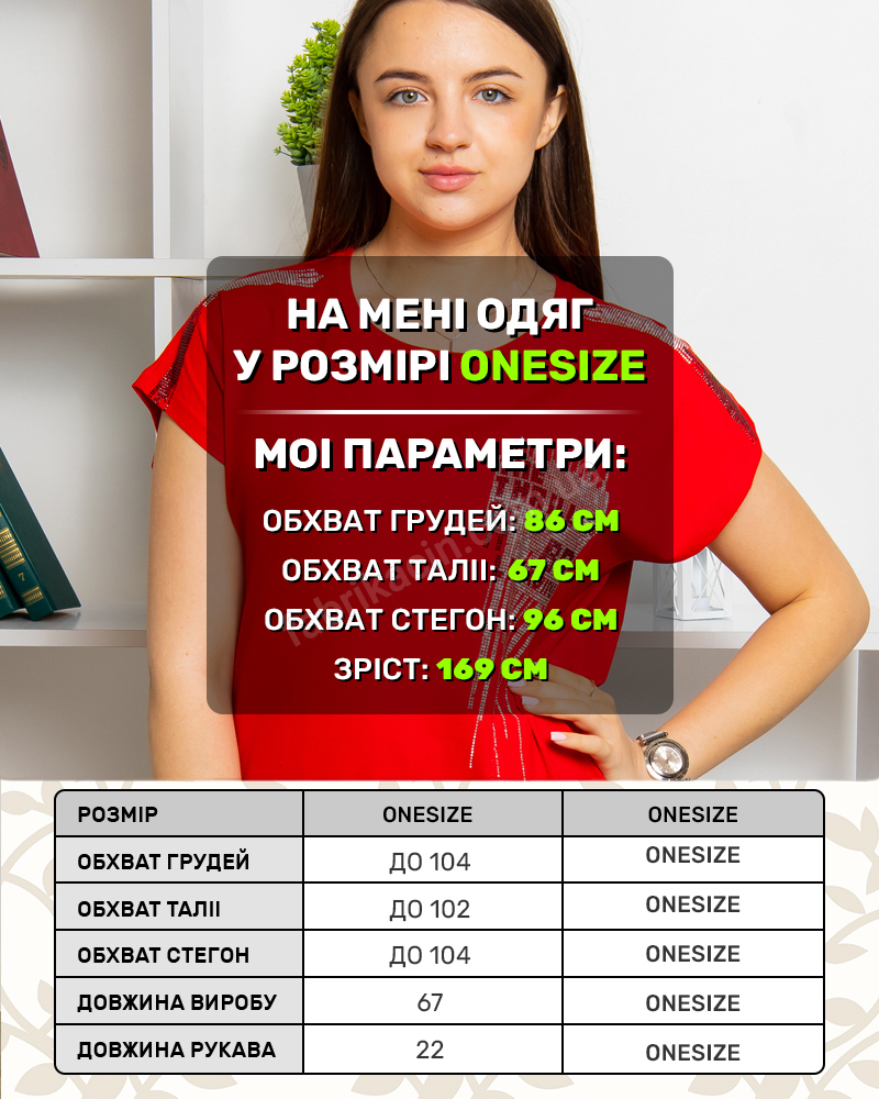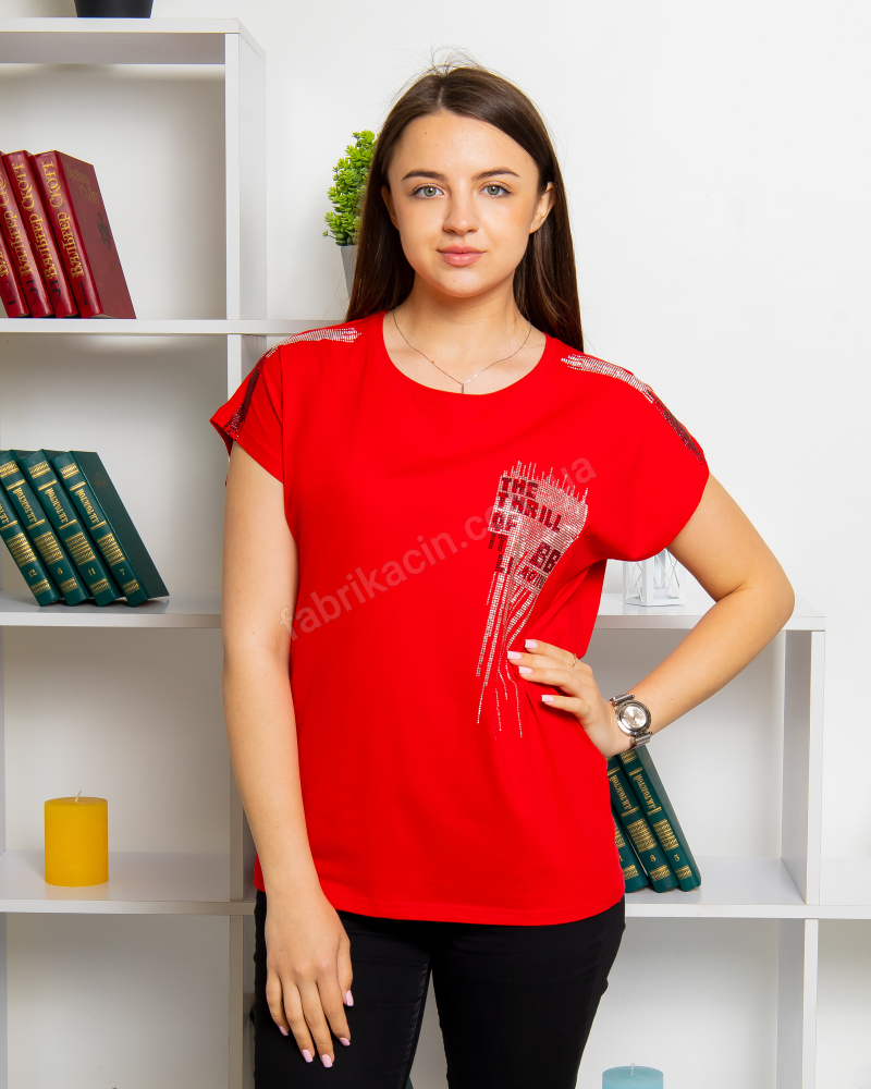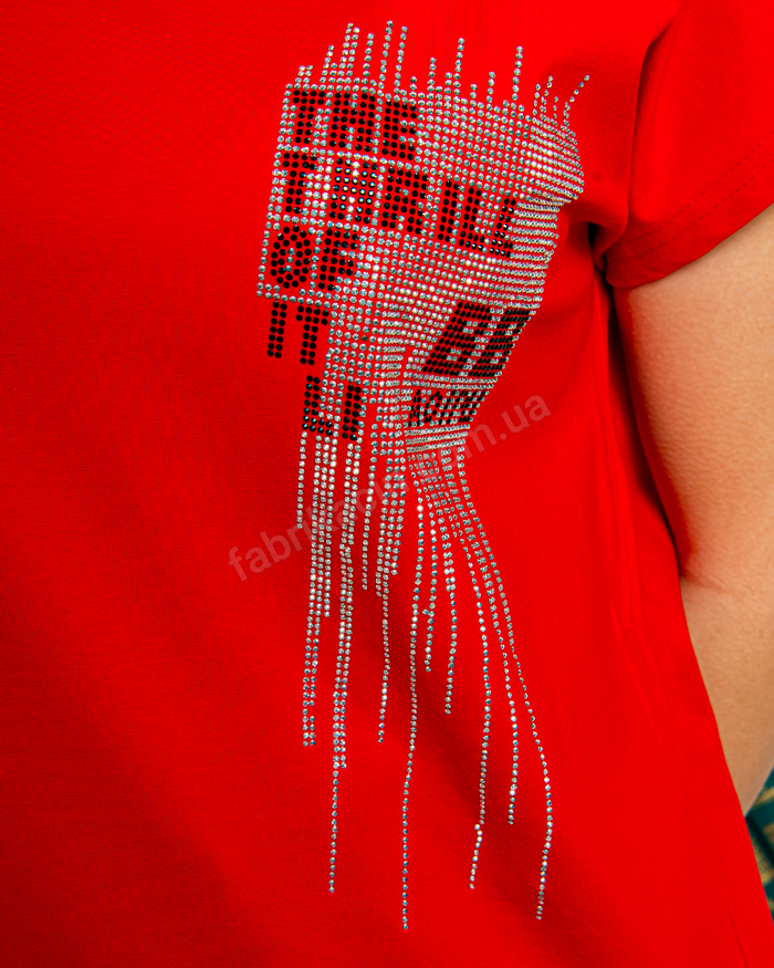 Футболка напис стрази OneSize 46 - 52 колір: червоний