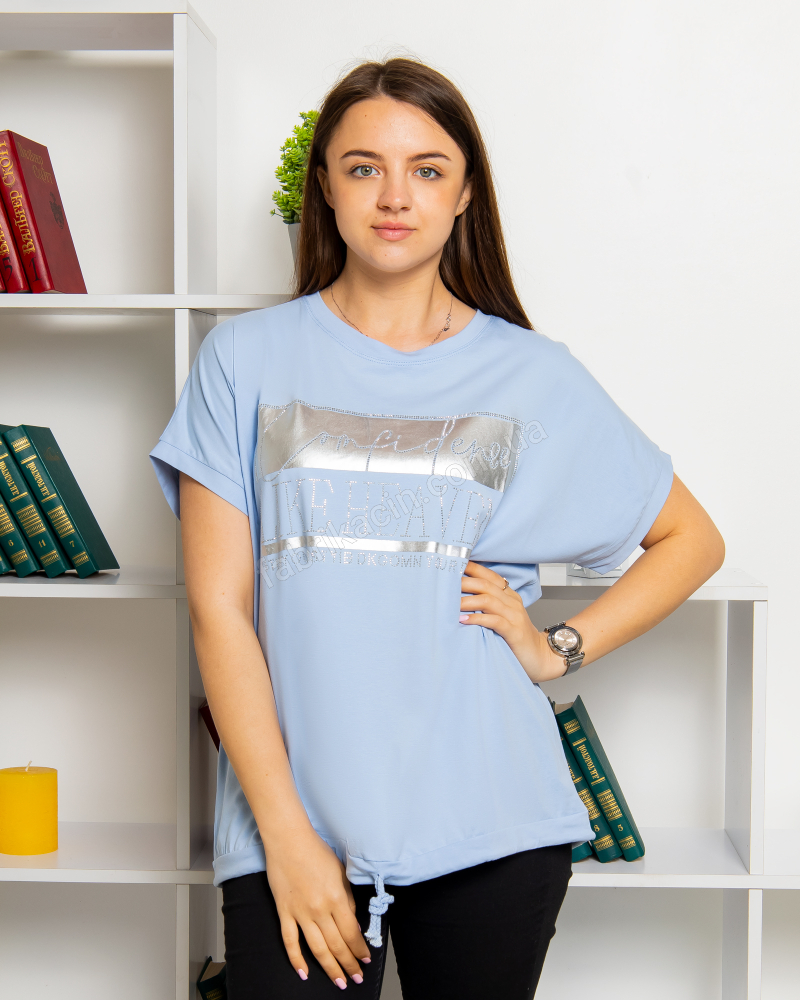 Футболка на завзку Like стрази OneSize, колір: блакитний