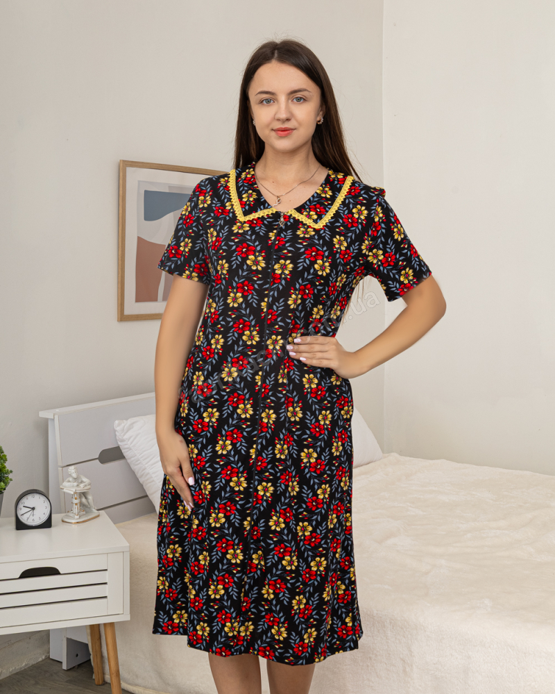 Халат у квіти р-р: 46/M 48/L 50/XL 52/2XL 54/3XL 56/4XL цвет: чорний