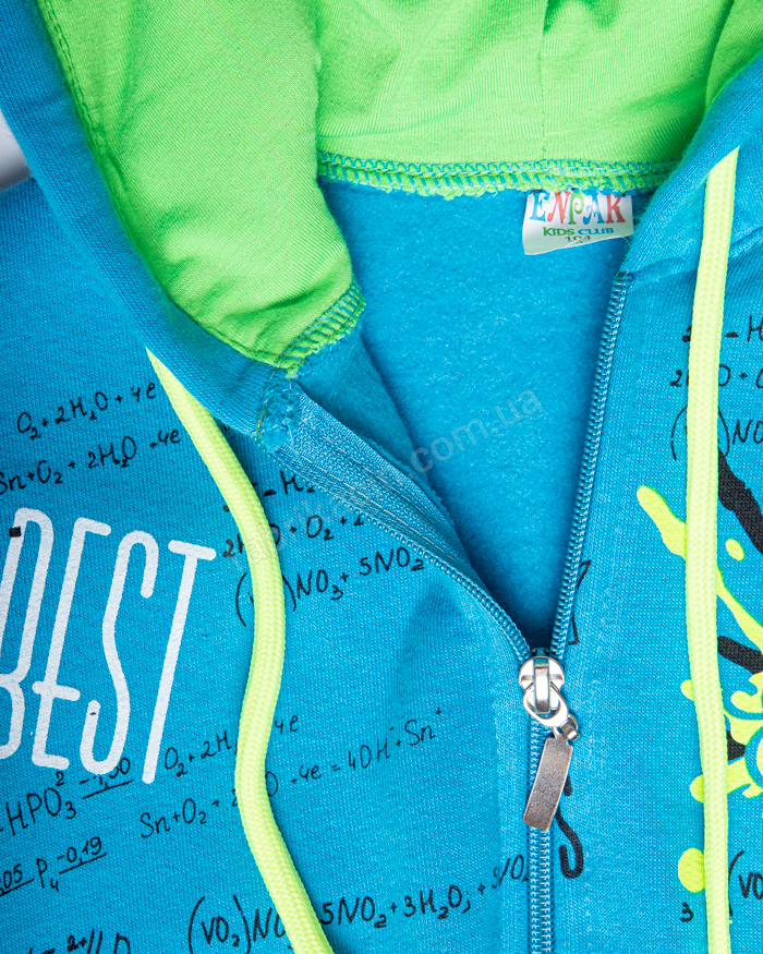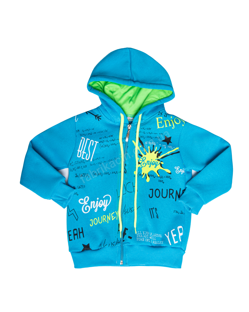 Кофта тепла на байці від чотирьох до восьми років, 95% бавовна з капюшоном та малюнком, застібається на блискавку, розмір вказується у двох параметрах: вік та ріст, виробництво Туреччина