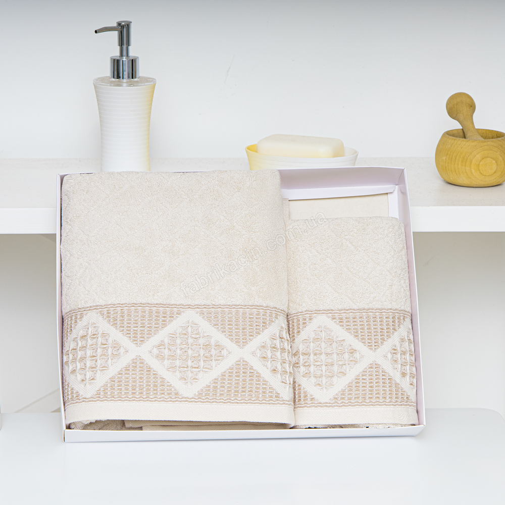 Набір з двох м'яких бавовняних, гіпоалергенних рушників в подарунковій упаковці: