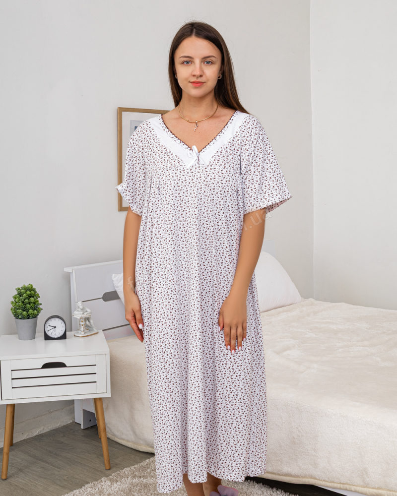 Нічна сорочка з якісної трикотажної бавовняної суперпреміальної тканини, Приємна на дотик, комфортна і зручна для сну і відпочинку. Дуже висока якість, добре носиться, не линяє і не розтягується під час прання. Матеріал: 100% бавовна - натуральна трикотажна суперпреміум тканина - "матфайз" Виробництво: Узбекистан Ми самі заміряли виріб і записали фактичний завмер - будь ласка, обирайте свій розмір за нашою таблицею нижче⬇