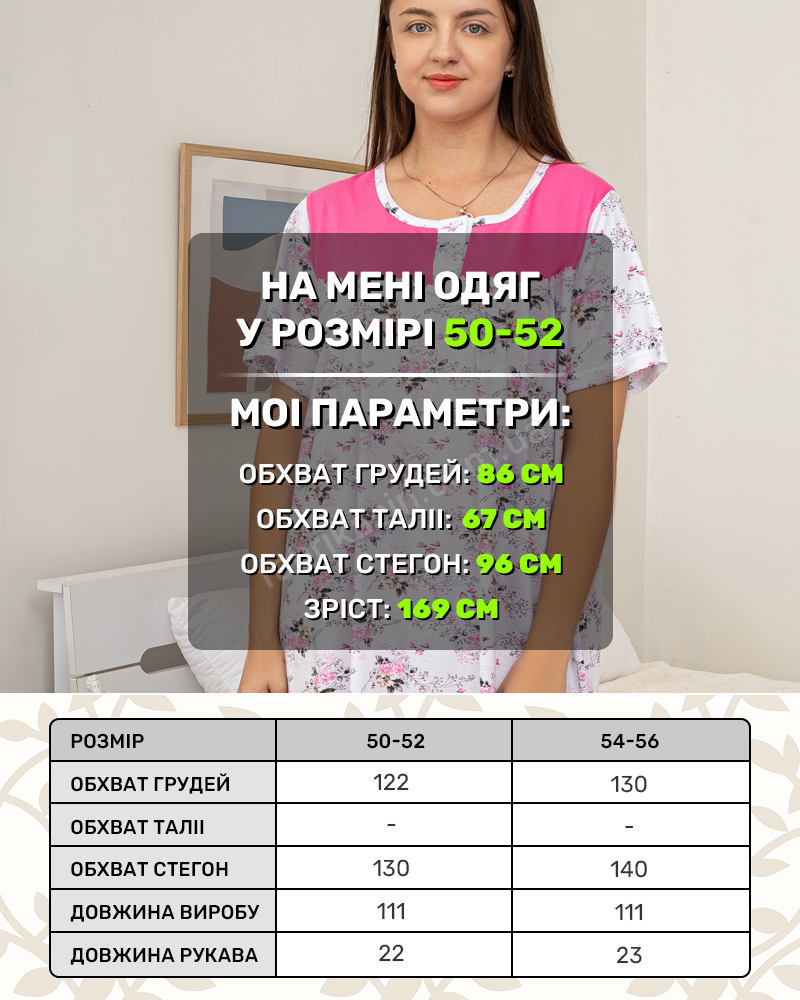 Трикотажна нічна сорочка з коротким рукавом. Приємна до тіла, комфортна і зручна ночнушка для сну і відпочинку. Має ніжний квітковий принт. Вільного крою, не сковує рухи.