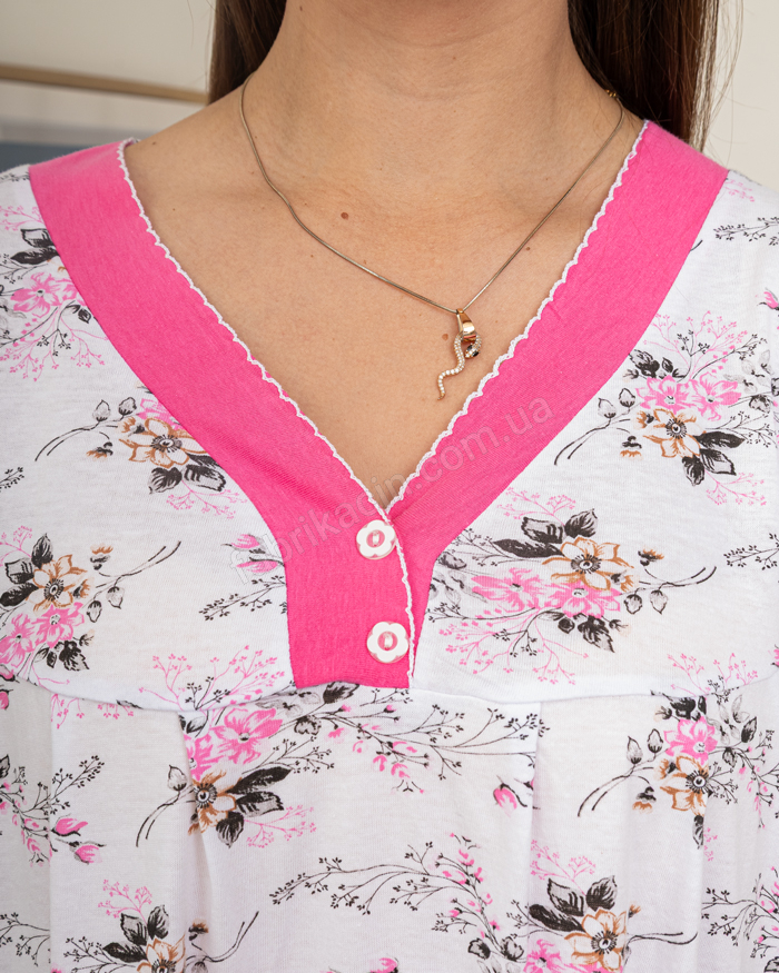Трикотажна нічна сорочка з коротким рукавом. Приємна до тіла, комфортна і зручна ночнушка для сну і відпочинку. Має ніжний квітковий принт. Вільного крою, не сковує рухи.