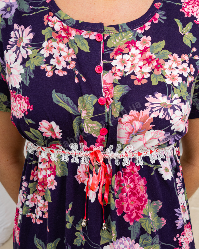 Жіноча нічна сорочка з якісної трикотажної бавовняної тканини, приємна на дотик і до тіла, вільного крою, в ній дуже комфортно і зручно, не сковує рухи.