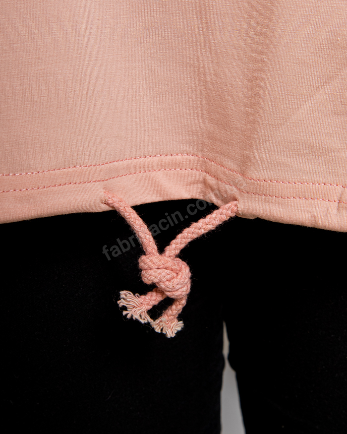 Однотонная свободного кроя с приспущенным плечом футболка, впереди  рисунок и завязка сбоку, состав ткани: 95% cotton 5% lycra, представлена в одном размере OneSize - примерно на размеры от 52 до 62