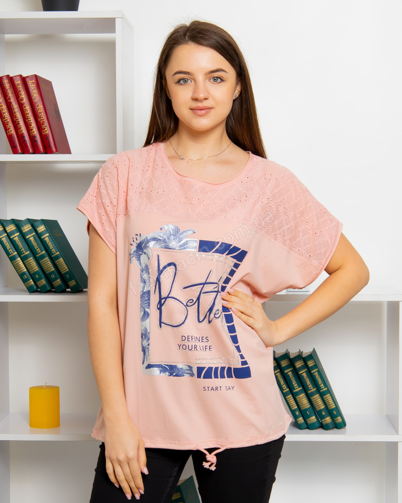 Футболка батал Brtter кружево OneSize от 52 до 62; цвет: пудровый