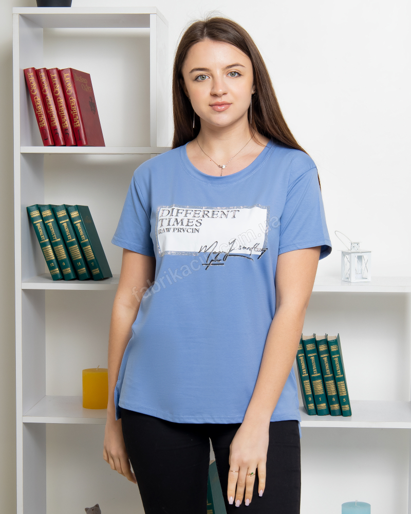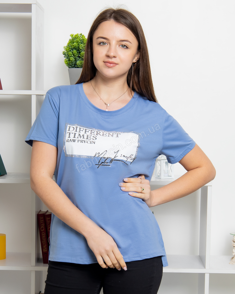 Футболка 95% хлопковая с надписью и стразами, разрезами по боках, размеры 50-XL; 52-2XL