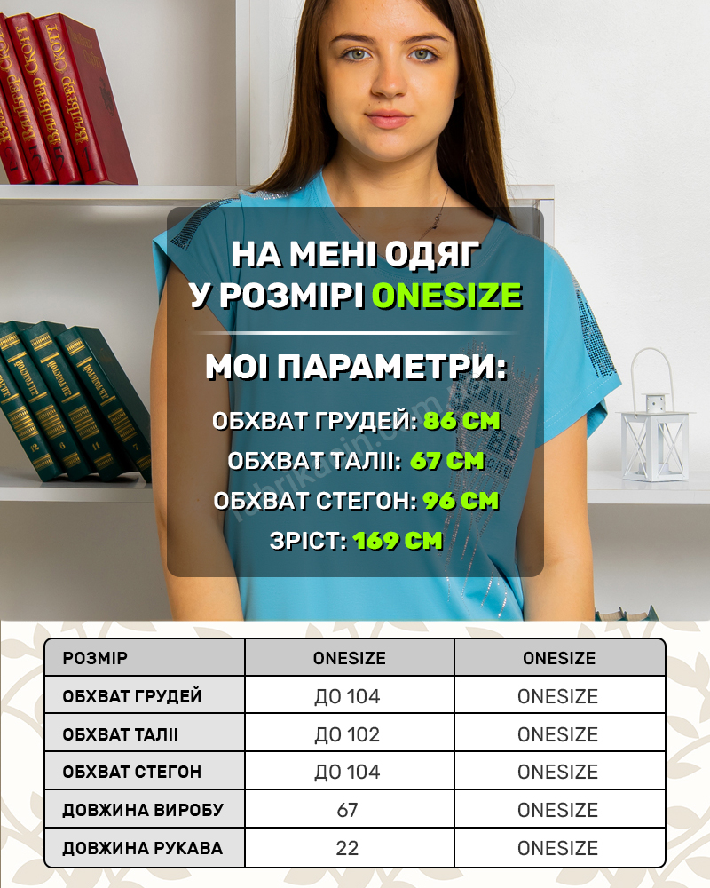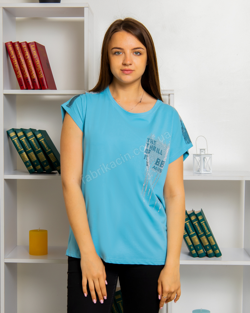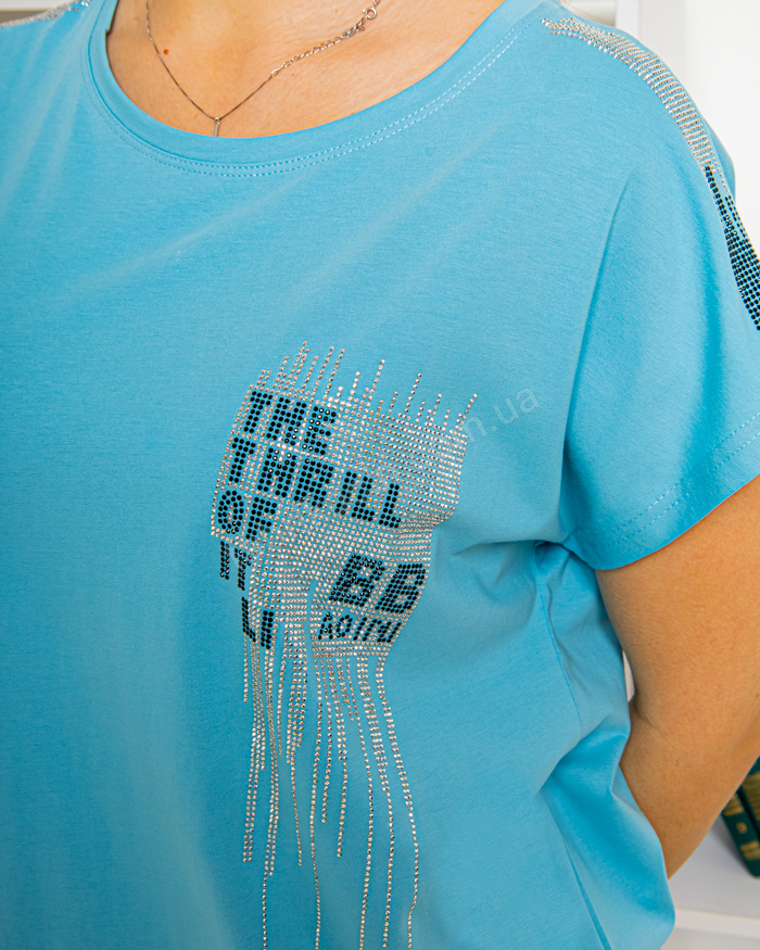 Футболка надпись стразы OneSize 46 - 52 цвет: голубой
