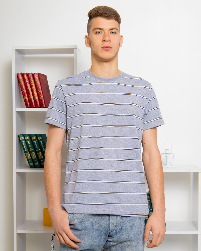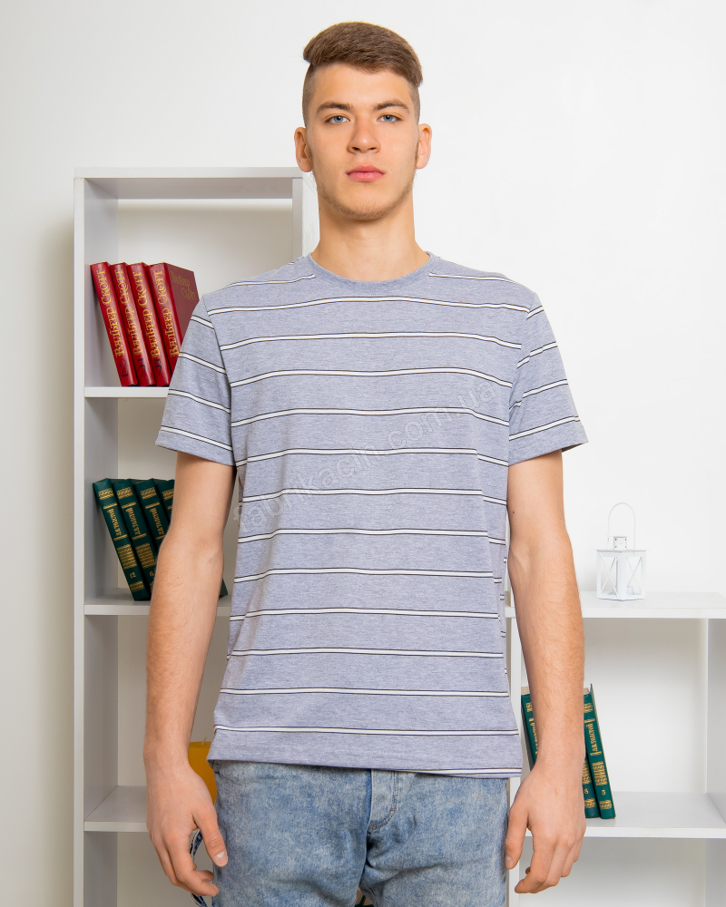Футболка батал полоска 48; 50; 52; 54; 56 цвет: серый
