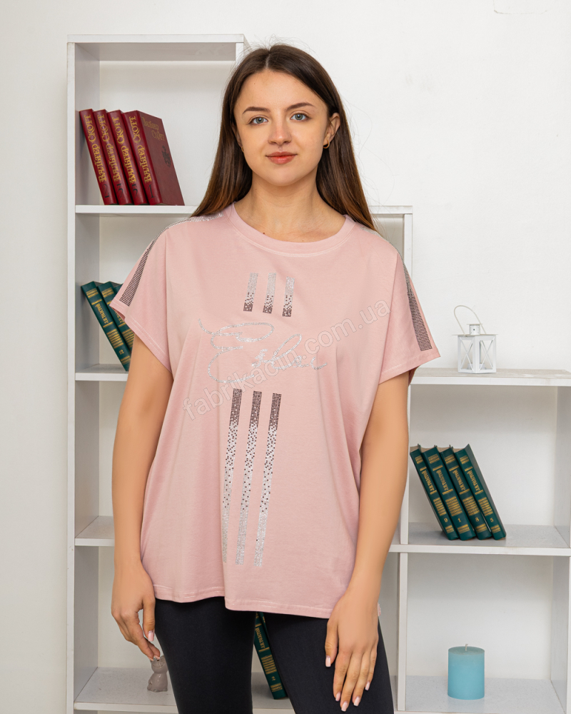 Футболка 95% хлопок, украшена стразами, свободный крой, круглый вырез, приспущенный рукав. Замечательная футболка изготовлена из качественного хлопкового трикотажа. Представлена в одном размере - OneSize, подойдет на размер от 54 до 58