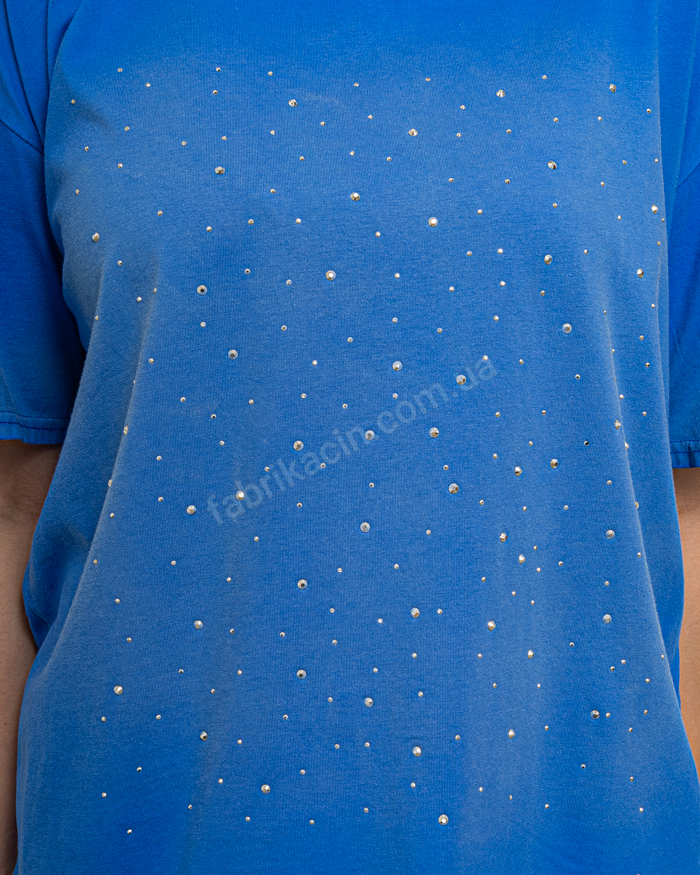 Футболка 95% хлопок, с ефектом потертости, со стразами, свободный прямой крой, круглый вырез, короткий рукав. Замечательная футболка изготовлена из качественного хлопкового трикотажа. Представлена в одном размере - OneSize, подойдет на размер от 50 до 54