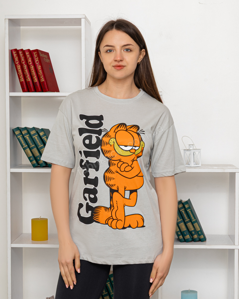 Яркая и стильная футболка - 100% хлопок. Мультяшный принт, свободный крой в стиле oversize, круглый вырез. Замечательная футболка изготовлена из качественного хлопкового трикотажа, приятный к телу, идеально подходит для повседневных образов, прогулок или отдыха. В ассортименте нежные цвета.