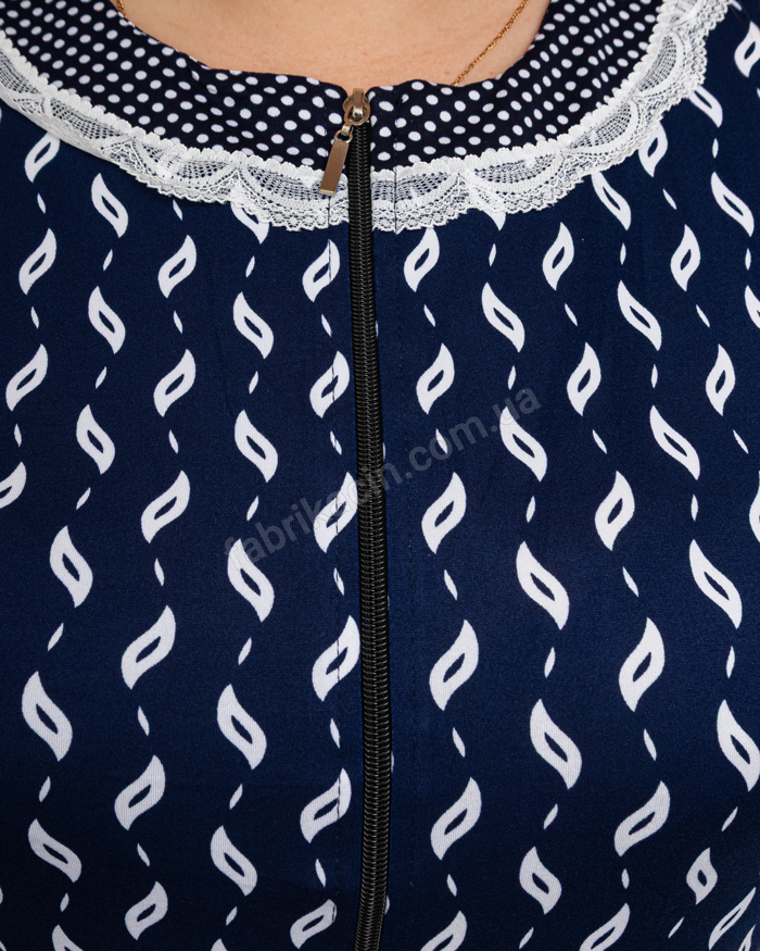 Комфортный и женственный халат из мягкой вискозной ткани. Материал хорошо тянется. Халат с короткими рукавами, на молнии и поясом на талии для лучшей фиксации, также есть два кармана впереди. Нежный принт со вставками кружева и гороха. Размеры: 58; 60; 62; 64; 66.