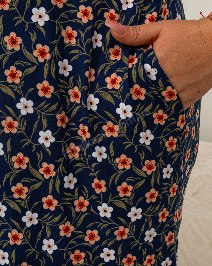 Комфортный и стильный халат из мягкой вискозной ткани. Материал хорошо тянется. Халат с короткими рукавами, на молнии и поясом на талии для лучшей фиксации, также есть два кармана. Красивый цветочный принт, низ халата украшен воланом.