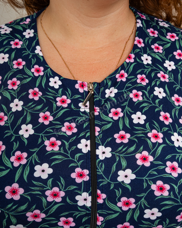 Комфортный и стильный халат из мягкой вискозной ткани. Материал хорошо тянется. Халат с короткими рукавами, на молнии и поясом на талии для лучшей фиксации, также есть два кармана. Красивый цветочный принт, низ халата украшен воланом.