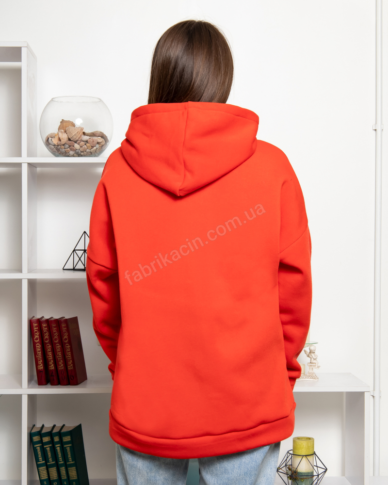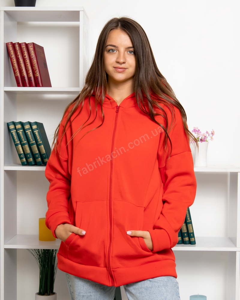 Кофта зипхуди теплая капюшон 42-46; 46-50 цвет: красный