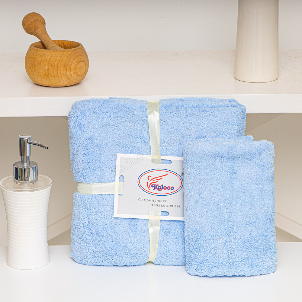 Набор из двух мягких микрофибровых, гипоаллергенных полотенец, одно - банное, другое - для лица и рук, а так же подойдет для кухни