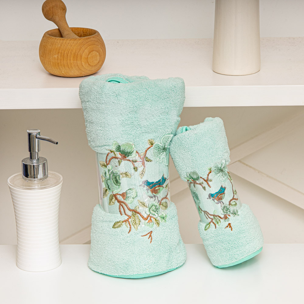 Набор для бани и кухни, рулон цветы, цвет: бирюзовый
