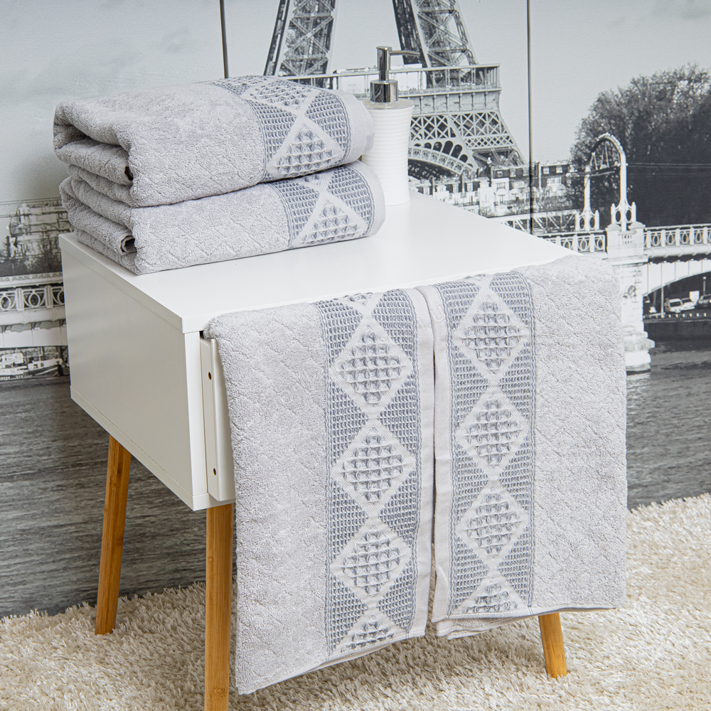 Набор полотенец для бани и лица, вафельное ромб,70 х 140, 45 х 90 цвет: стальной