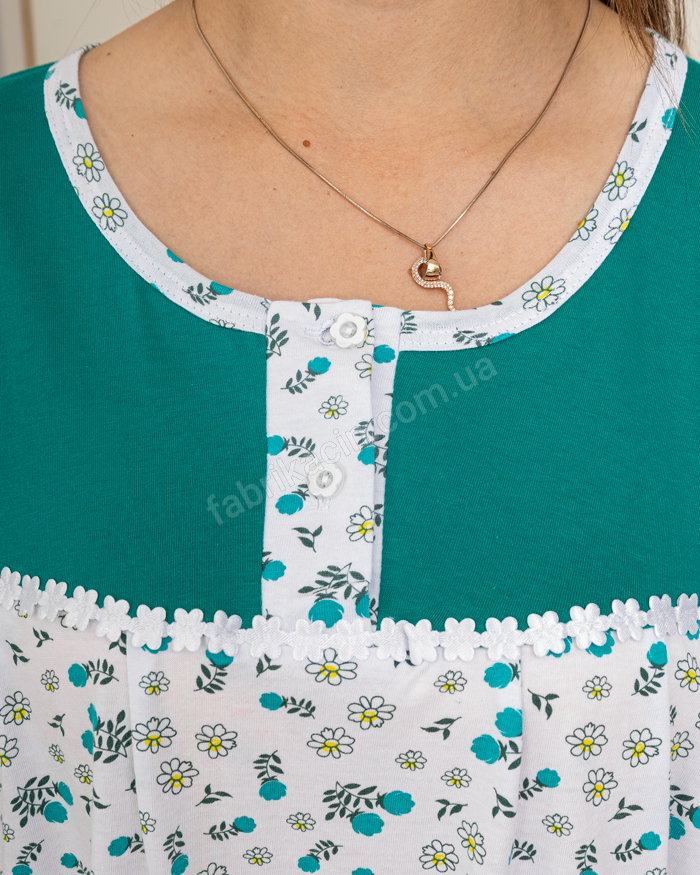 Ночная рубашка-ночнушка р-р: 48-58 цвет: белый-зеленый