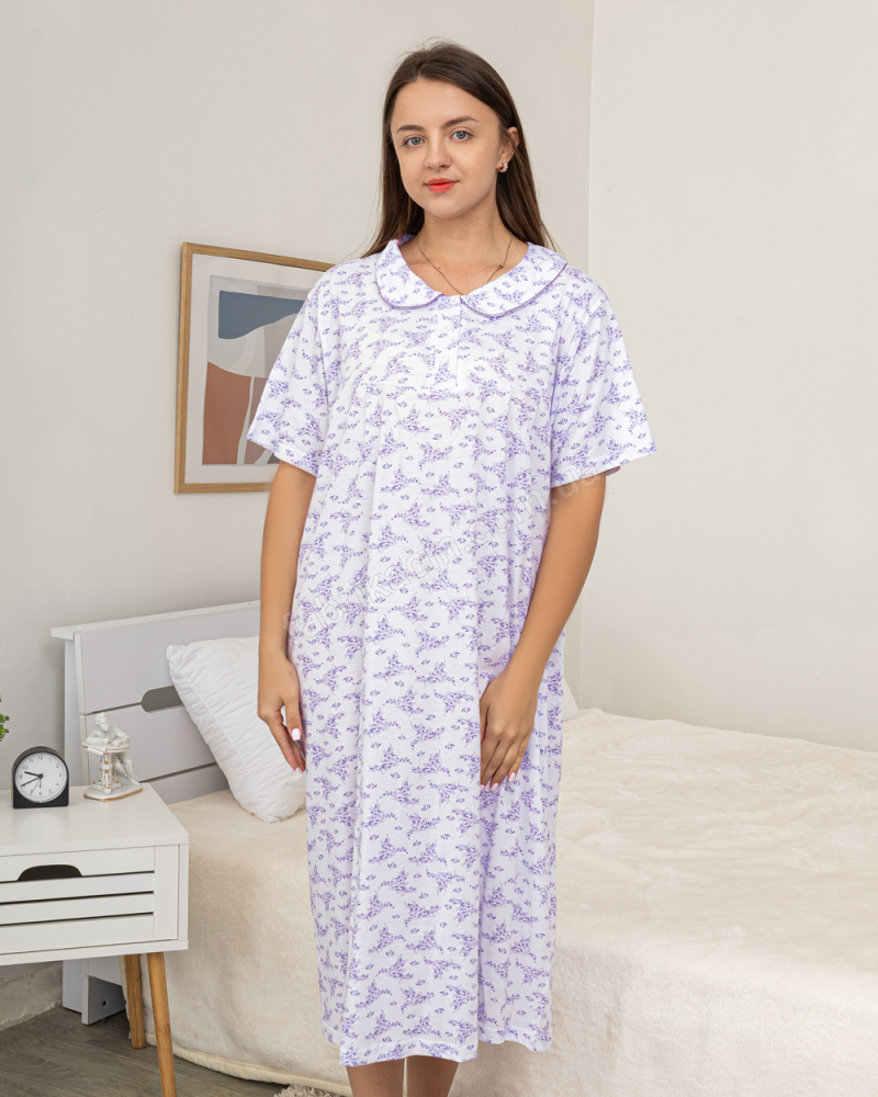 Ночная рубашка-ночнушка р-р: 48-58 цвет: белый-сиреневый