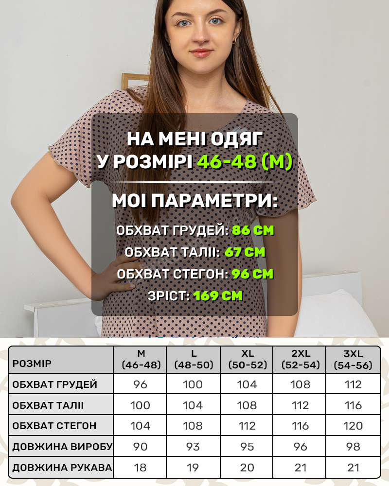 Женская ночная рубашка из качественной трикотажной хлопковой ткани приятная на ощупь и к телу, в ней очень комфортно и удобно, выбирая размер, смотрите на размерную сетку ниже