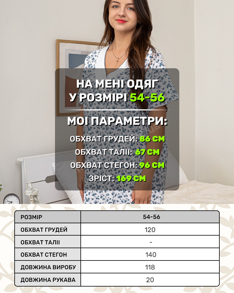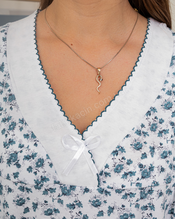 Трикотажная ночная рубашка с коротким рукавом, V-образный вырез. Приятная к телу, комфортная и удобная для сна и отдыха. Имеет нежный цветочный принт. Свободного кроя, не сковывает движения.