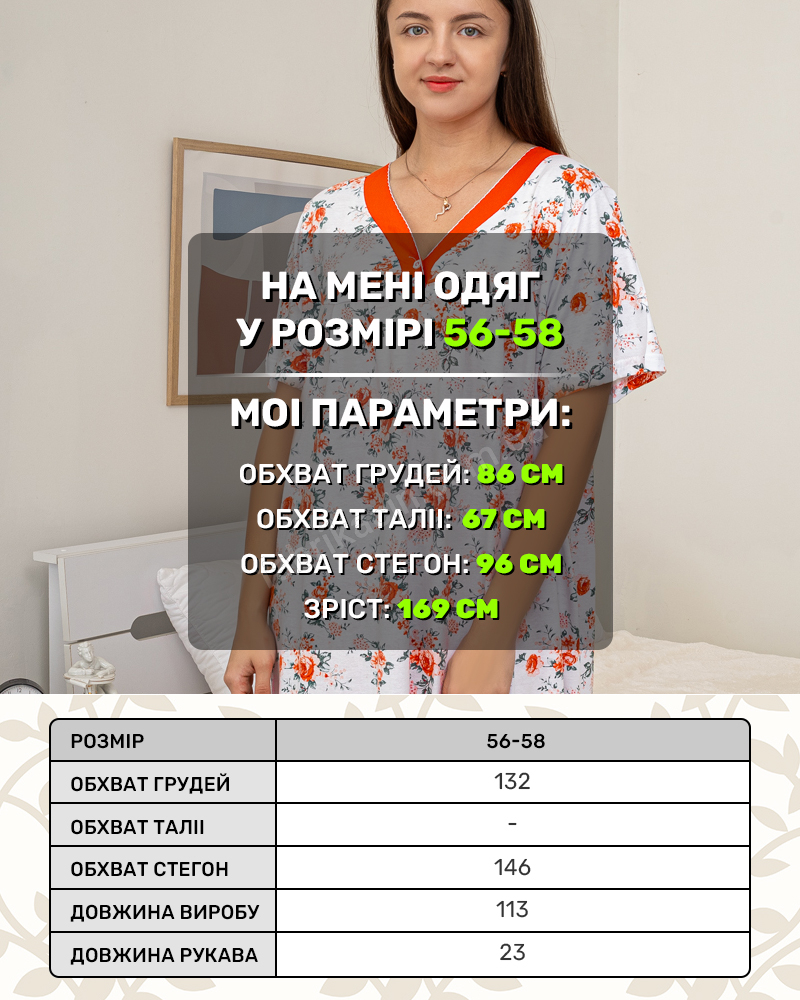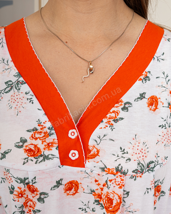 Ночная рубашка-ночнушка р-р: 48-58 цвет: белый-оранжевый