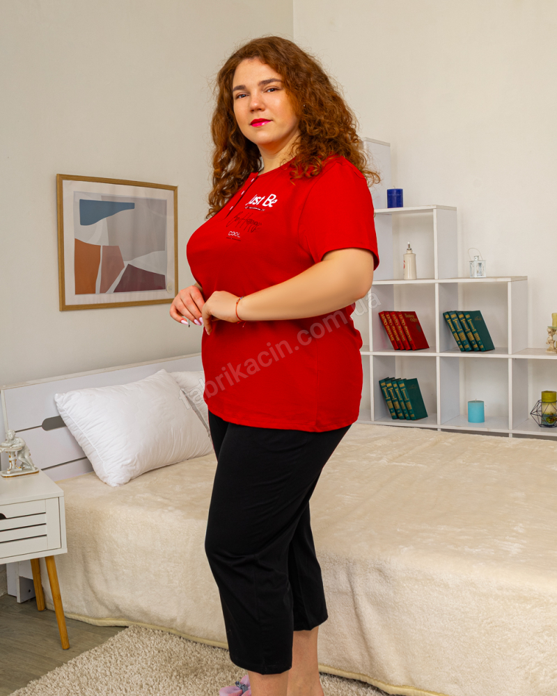 Пижама, футболка с бриджами 56 - 66 цвeт: бордовый