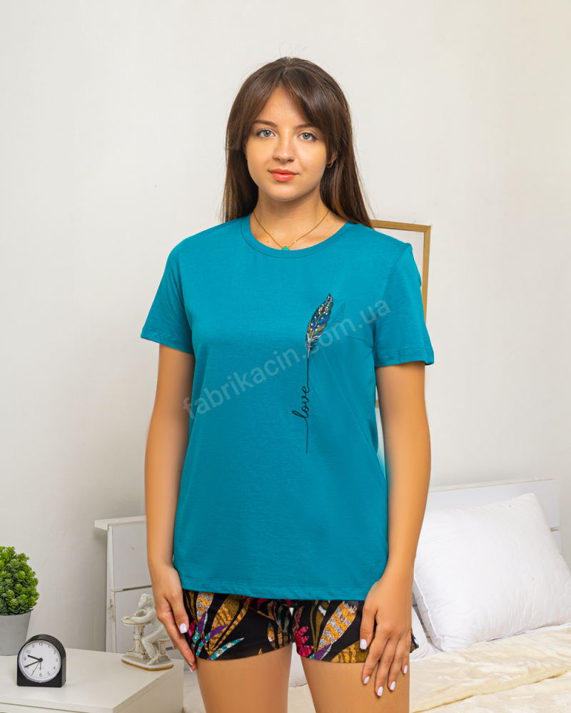 Пижама, футболка с шортами перо 44 - 54, цвeт: лазурный