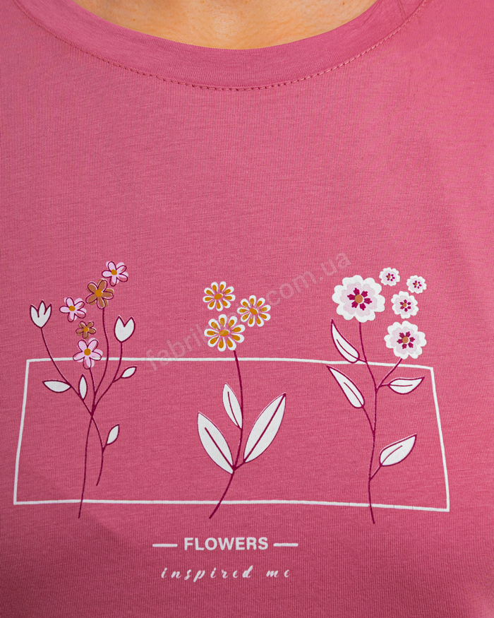 Женская трикотажная пижама, состоящая из футболки и шорт с ярким принтом. Футболка однотонная с рисунком, свободного кроя. Шорти на резинки с карманами, средняя посадка, идут приталеные, цветочный принт.