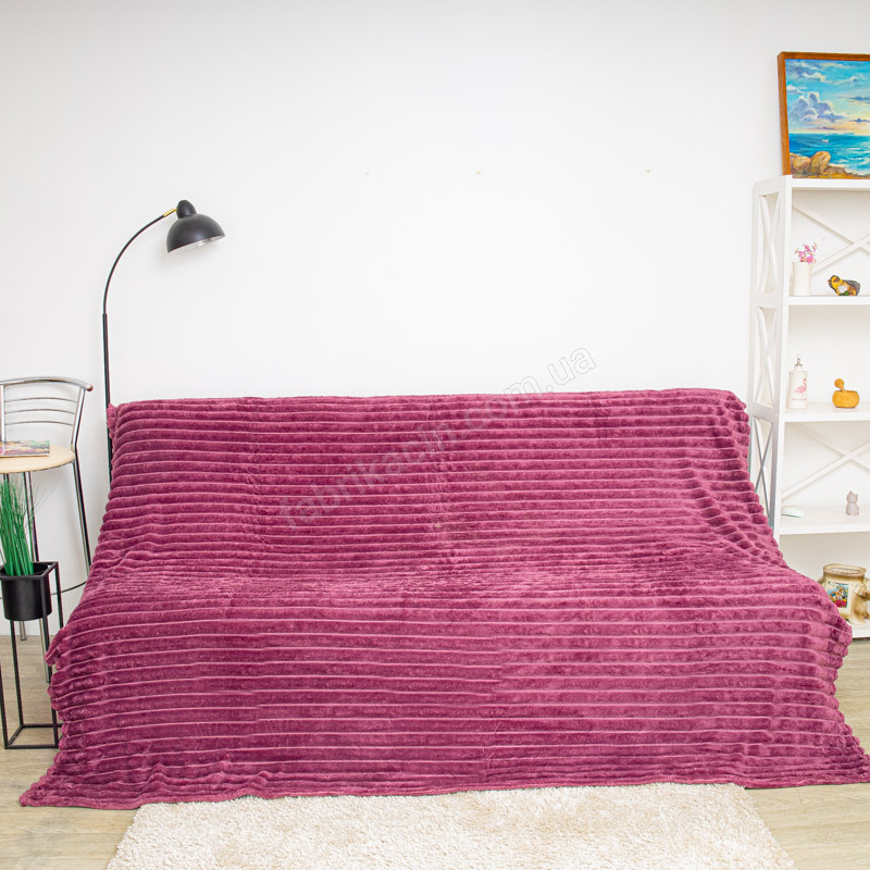 Плед-покрывало однотонное в широкую в полоску 2сп цвет: фиолетовый