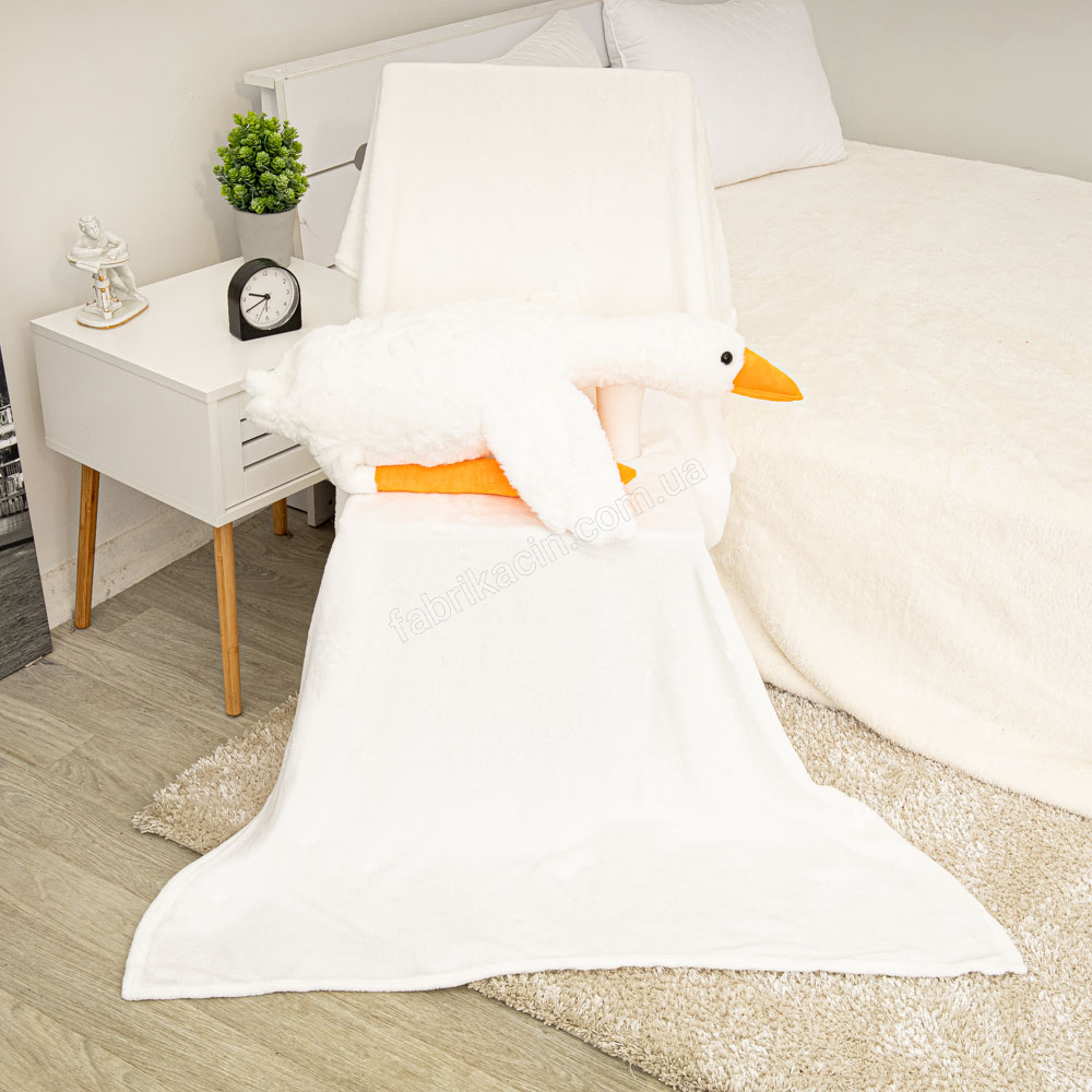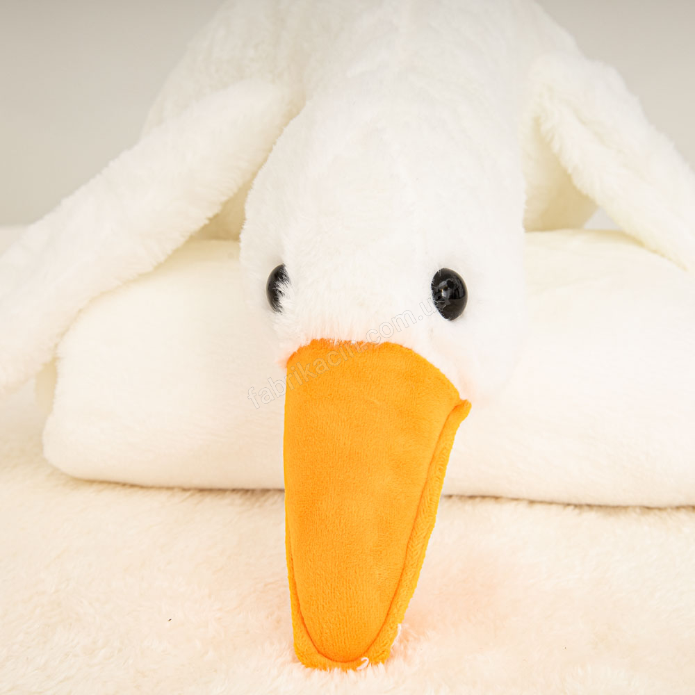 Гусь 3в1: мягкий плед, удобная подушка и милая плюшевая игрушка. Практичный и полезный подарок для любителей мягких игрушек в любом возрасте. На животике у птички расположена змейка, внутри которой спрятан плед отличного качества. Материал очень мягкий, приятный на ощупь. А еще, форма игрушки позволяет использовать ее как небольшую удобную подушку, которую легко можно взять с собой в путешествие или на пикник и за считанные минуты организовать комфортное место отдыха для себя или ребенка.