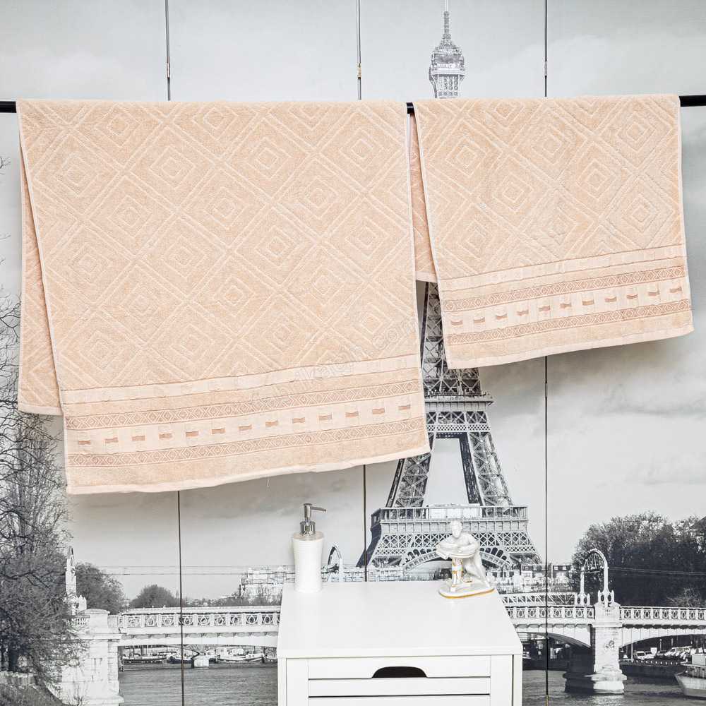 Полотенце банное, набивной ромб 70 х 140, цвет: бежевый