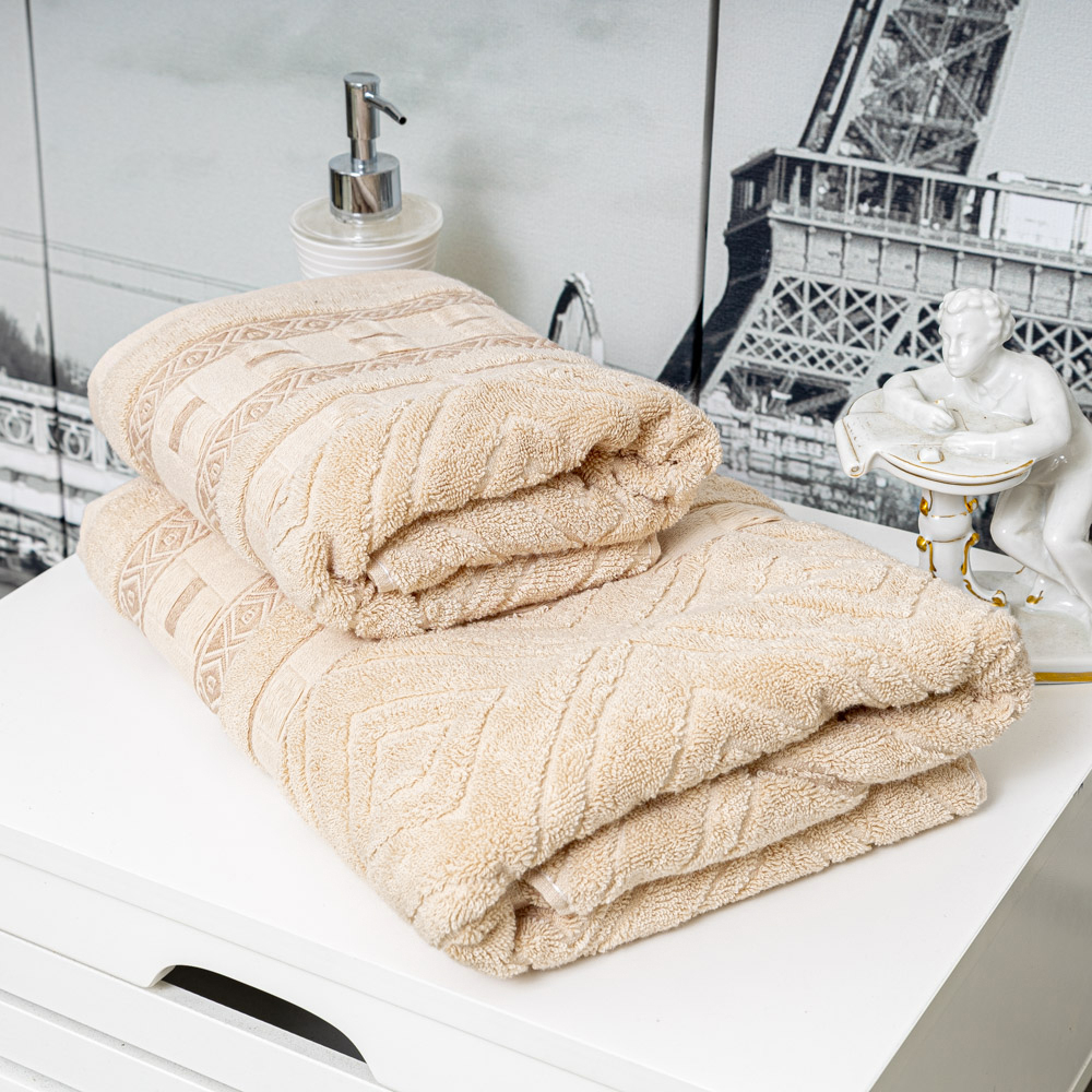 Полотенце лицевое, набивной ромб 45 х 90, цвет: бежевый