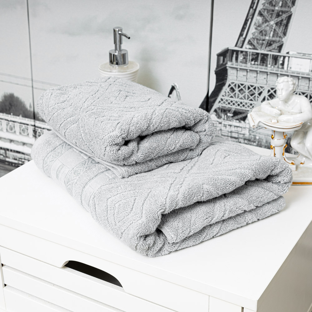 Полотенце лицевое, набивной ромб 45 х 90, цвет: серый