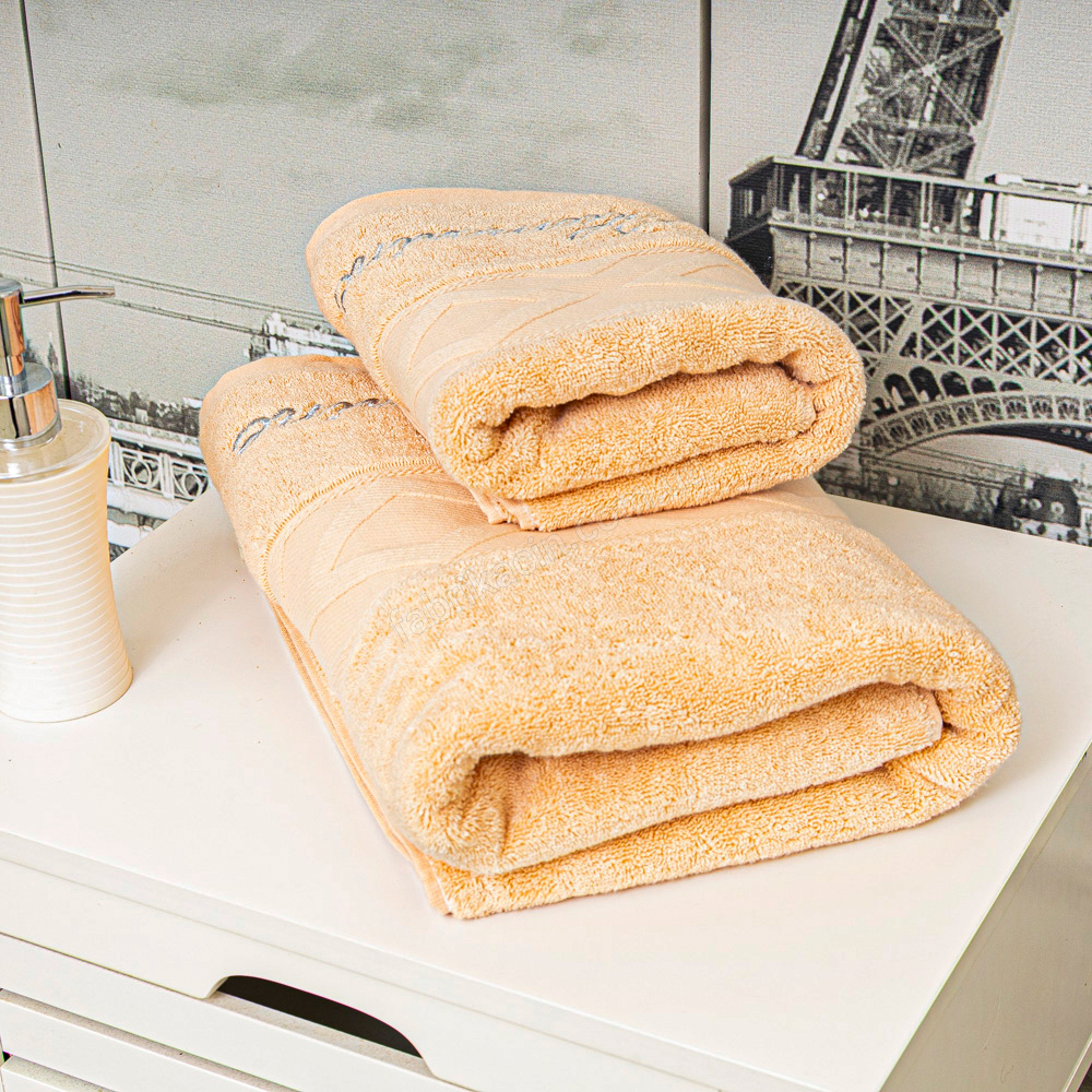 Полотенце лицевое однотонное с вышивкой 50х100, цвет: бежевый