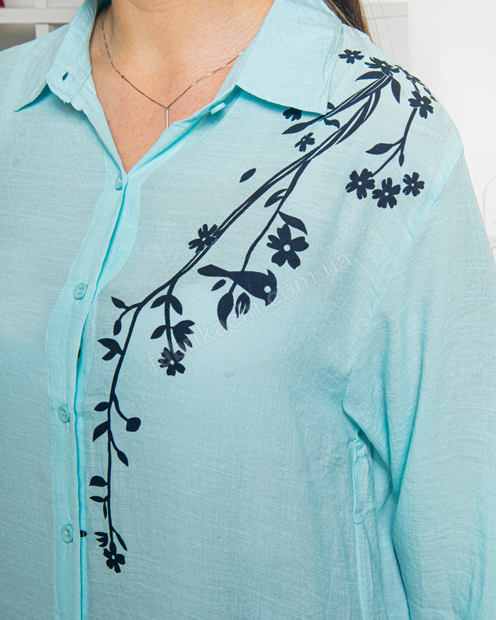 Рубашка удлиненная Веточка 50,52,54,56 цвет: бирюзовый