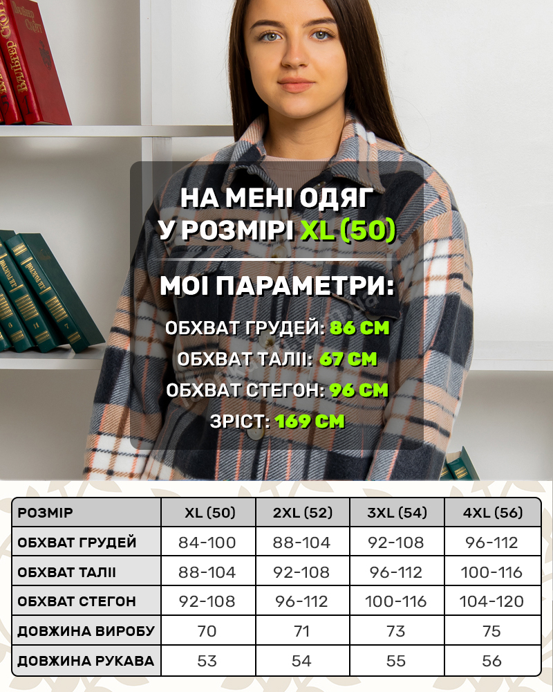 Рубашка в клетку классическая, застегивается на пуговке. Перед немного короче спинки. В наличии размеры: 50(XL)-1; 52(2XL)-2; 54(3XL)-3, 56(4XL)-4. Обратите внимание; изделие маломерит на один-два размера (см. таблицу) в размерной сетке ниже мы замерили рукав. Если необходим свободный вариант: оверсайз, выбирайте больший размер