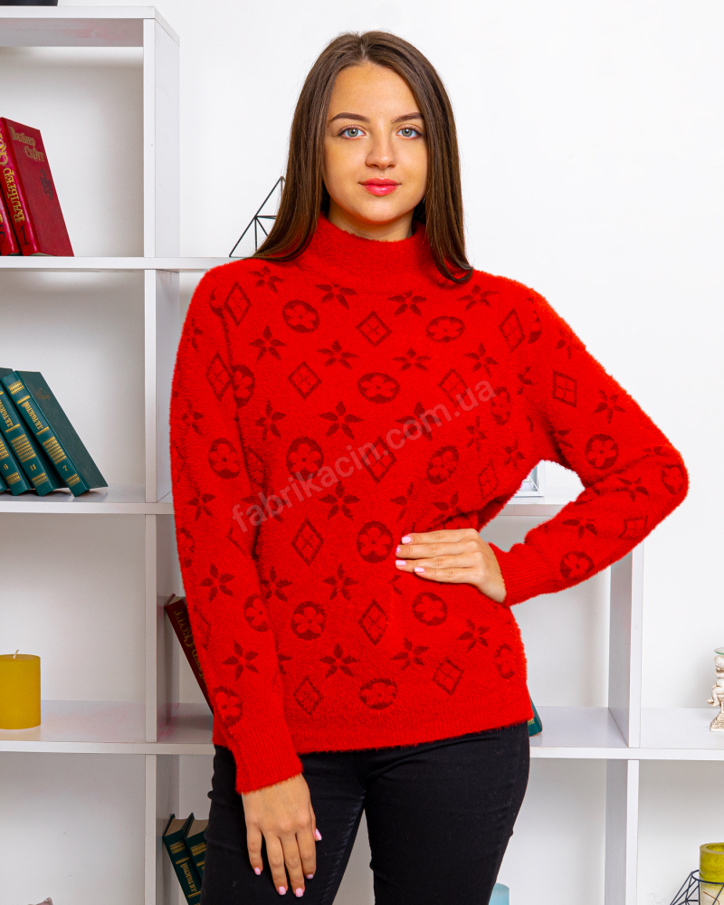 Свитер под горло, пушистый 50 - 54, цвет: красный