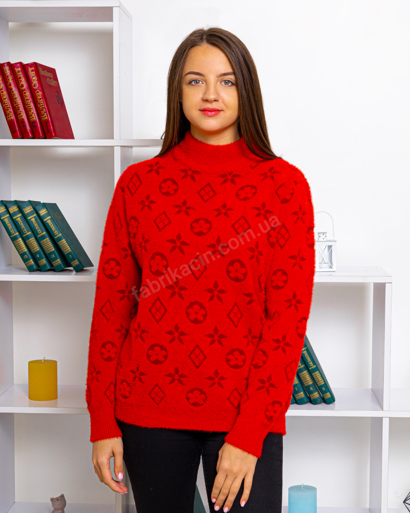 Свитер под горло, пушистый 50 - 54, цвет: красный