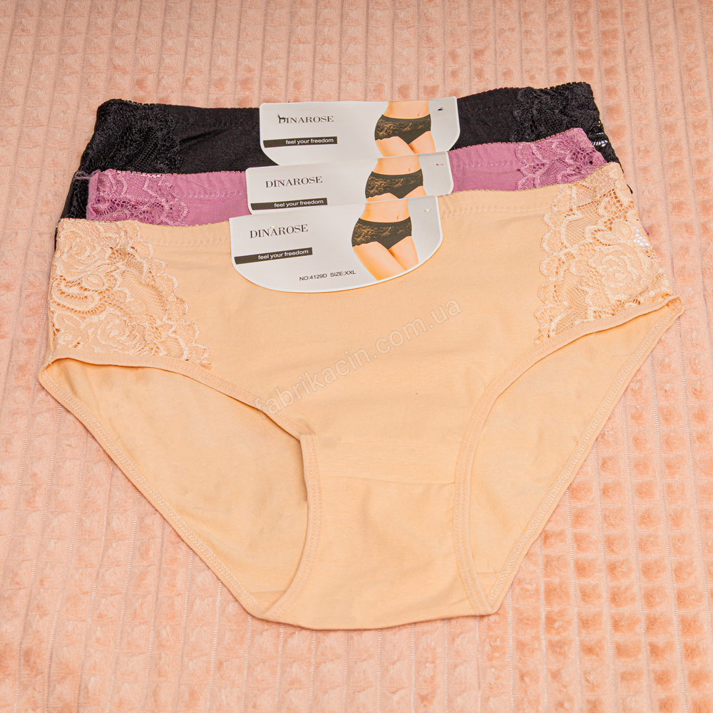 Трусы из мягкого хлопокового трикотажа, средння посадка, с боковыми вставками кружева. Материал: 95% хлопок, 5 % спандекс.