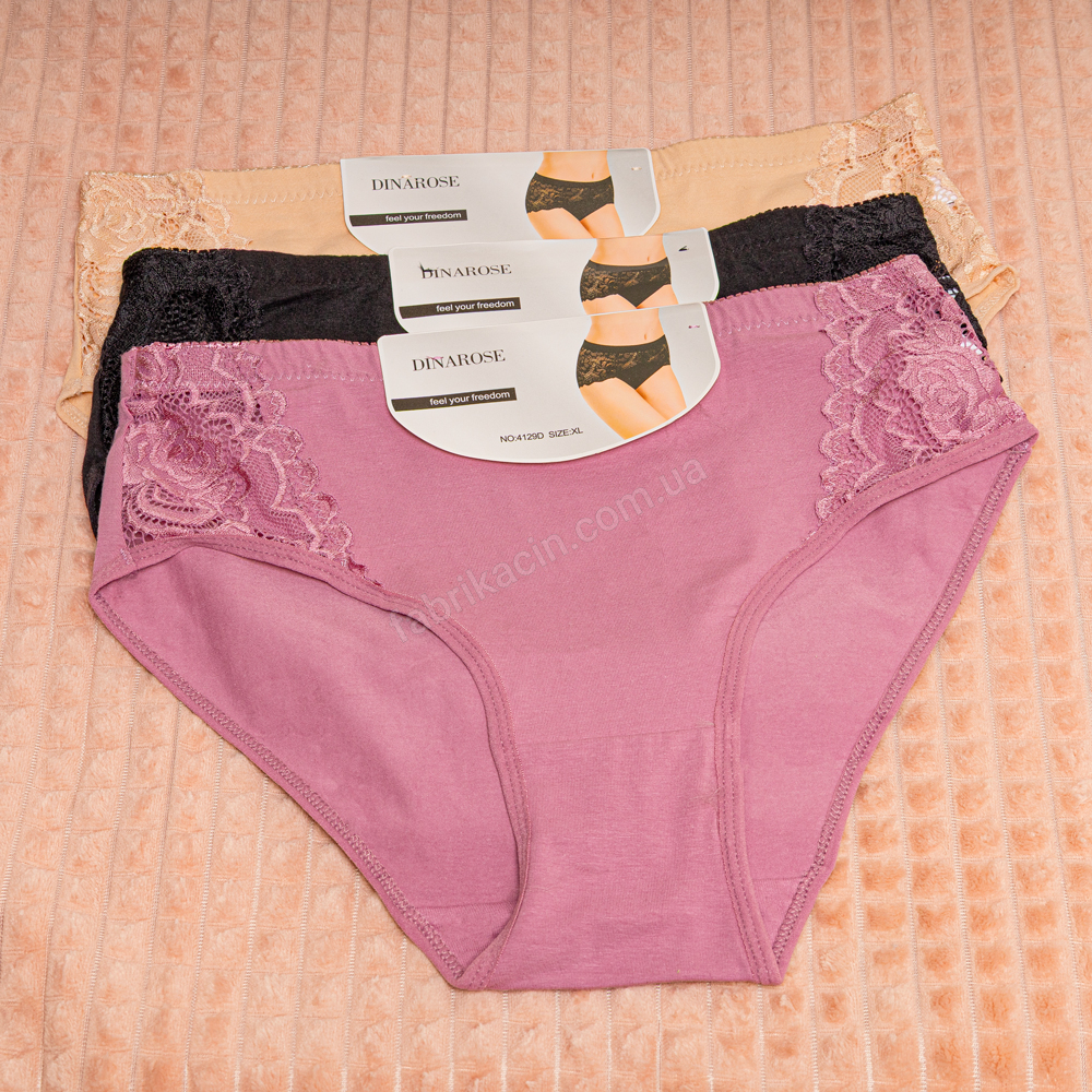 Трусы из мягкого хлопокового трикотажа, средння посадка, с боковыми вставками кружева. Материал: 95% хлопок, 5 % спандекс.